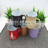 LOGO Customized 350ml/450ml Enamel Mug With Colorful Rim and Handle Wholesale.