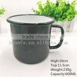 2016 Wholesale Various High Quality Black Outdoor Enamel Mug Square Handle Enamel Steel Cups With Gold Logo