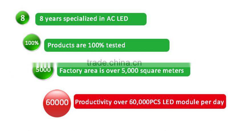 We are the first domestic research and development and successful mass production high voltage constant current integrated LED board factory. It has significantly reduced the cost of LED indoor lighting, and received great attention and recognition of LED industry.