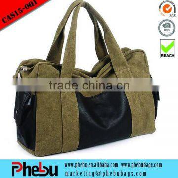 Vintage khaki Canvas tote bag with leather