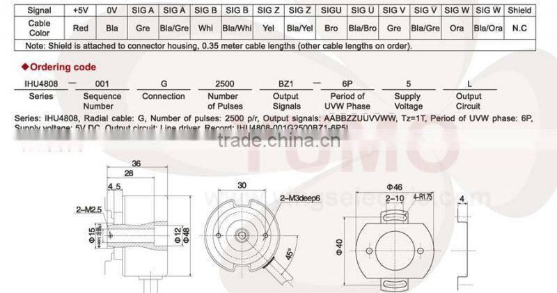 YUMO IHU4808 2500ppr 2P5L DC 5V UVW Signal Phase Hollow Incremental Encoder