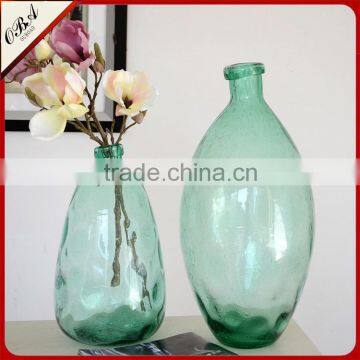 Wholesale Home Decoration Green Clear Tall Glass Vase Handmade Bubble Process Glass Flower Bottle