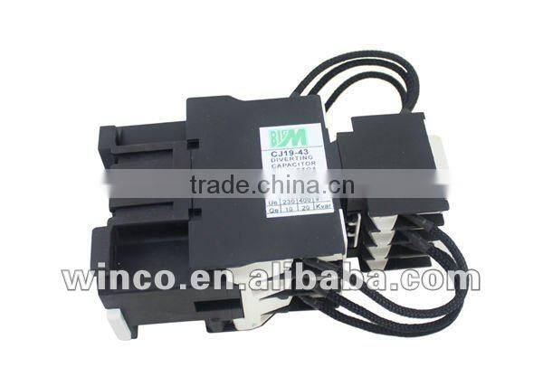 CJ19 series changeover capacitor contactor is mainly applicable to a power line of AC 50Hzor 60Hz, rated working voltage up to 380V. It is used to put a low voltage parallel connectedcapacitor in operation or switch it off in a low voltage reactive power compensation device. Thecontactor is equipped with a surge suppressor, which can effectively reduce the surge currentpassing through the capacitor at weitching on and suppress the over-voltage at switching off.The product is in conformity with the standards IEC947-4-1.
