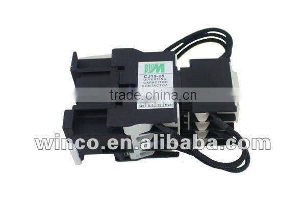 CJ19 series changeover capacitor contactor is mainly applicable to a power line of AC 50Hzor 60Hz, rated working voltage up to 380V. It is used to put a low voltage parallel connectedcapacitor in operation or switch it off in a low voltage reactive power compensation device. Thecontactor is equipped with a surge suppressor, which can effectively reduce the surge currentpassing through the capacitor at weitching on and suppress the over-voltage at switching off.The product is in conformity with the standards IEC947-4-1.