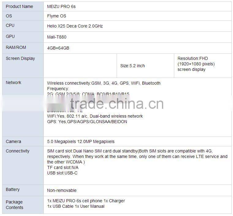 Newest 2016 Original Meizu Pro6s Pro 6s 5.2 Inch 64GB ROM 4GB RAM Android 6.0 4D LTE Mobile Phone