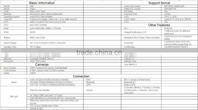 Original UMI Super 5.5" 4G FHD Smartphone Android 6.0 Helio P10 (MT6755) Octa Core 4GB/32GB 5MP/13MP Flash LED 4000mAh Cellphone