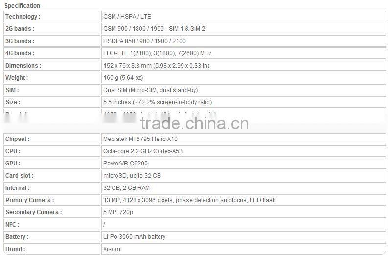 Home > Products > New Products > 16 GB/32GB OctaCore Xiaomi Redmi Note2 Prime/ Note 3 Pro 5.5 Inch 4G LTE Android Smart Phone