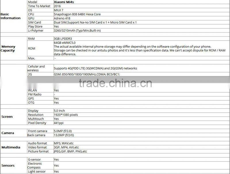 Bulk Stock Mi 4S 2016 Xiaomi 4 S Mobile Phone Price List!