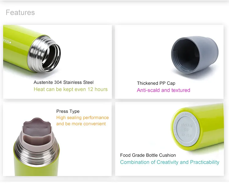 * This stainless steel bottle is non-spill. OEM&ODM service or order from stock, both are OK.
