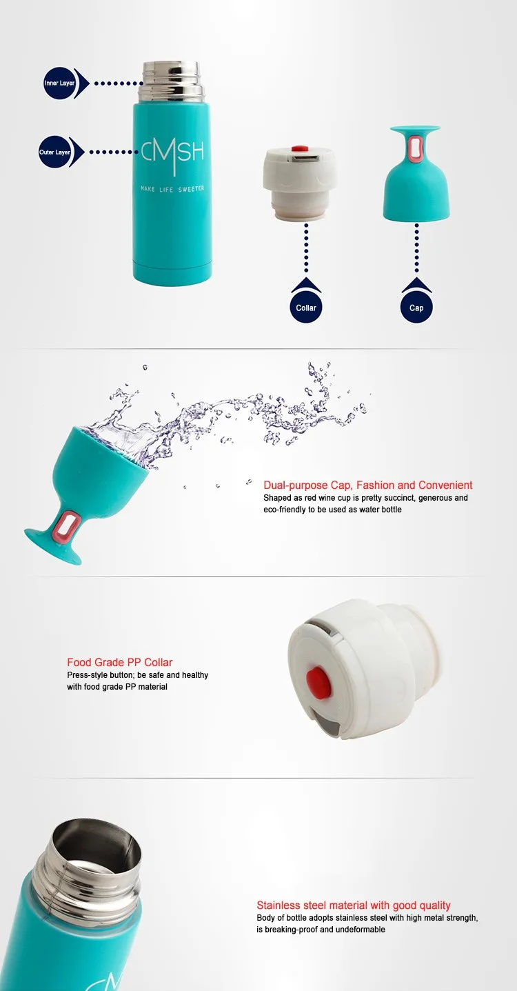 * This hot sale 380ml lovely shape stainless steel water bottle can be used for drinking water and milk even if the liquid