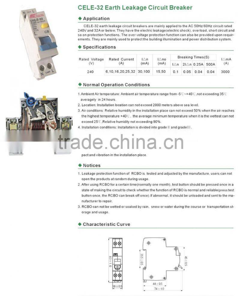 SGPN-32LE leakage protective breaker is used in the single phase residence circuit of AC 50Hz/60Hz, rated voltage230V, used as electron shock protection, it can protect civil electron circuit from overload and short circuit This produce has advantages of small volume, high breaking capacity zero,and live wire are cut off at the same time ,also protecting person from electric shock when the live wire connected opposite. This product conforms to IEC61009, GB16917 Stardands.