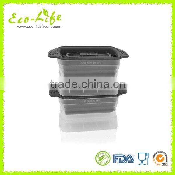 100% Pure Silicone Color Frame Foldable Lunch Box 600ML, Food Fruit Collapsible Container For Microwave Oven