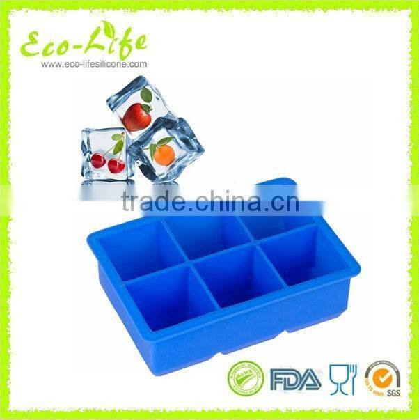 Food Grade Big size 6 Square shape Silicone Ice Cube Tray, Whiskey Squares Ice Mold