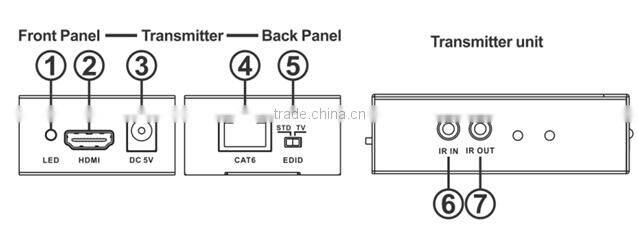 5. EDID: The Extender can switch STD EDID mode(1080p60,2CH audio) or copy TV EDID information to HDMI source.