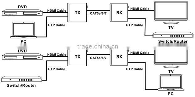 The HDMI USB KVM (Keyboard, Video, Mouse) Extender is a tool which can extend your HDMI signal over 328fts/100meters to a compatible display. It is designed to convert HDMI signal to standard HDBaseT signal which can be transmitted by CAT5e/CAT6/CAT7 cable. It also supports Transfer Bidirectional Infrared control signal and RS232 control signal. With LAN serving connection and external digital and analog audio capability that gives users the convenience of additional audio connection. It also supports the connection of USB host and 2 USB device ports. So you can control the Source in the Sink side which is 328fts outside, also you can control the Sink in the Source side which is 328fts outside using the HDMI Extender.