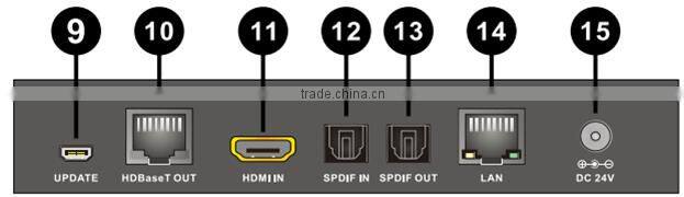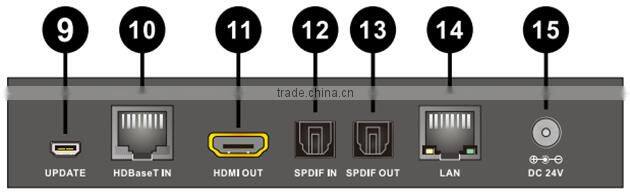 10. HDBaseT IN: Standard HDBaseT signal output port. Connect HDBaseT Transmitterwith a Cat5e/6/7 cable.