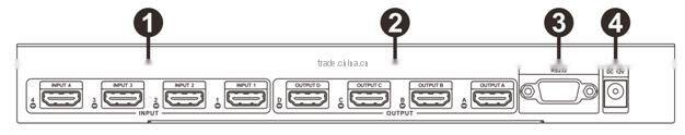 1. INPUT PORTS: LED1-4 illuminate when the HDMI signal plug in INPUT 1-4 port.