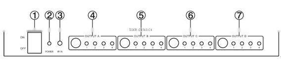 2. OUTPUT PORTS: LED A-D illuminate when the TV plug in OUTPUT A-D ports.