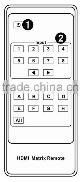 HDMI output selection button 1 to 8:Press to select the output from 1 to 8.
