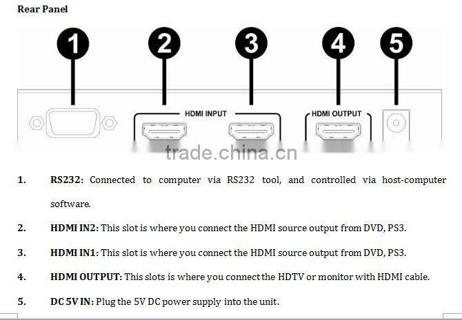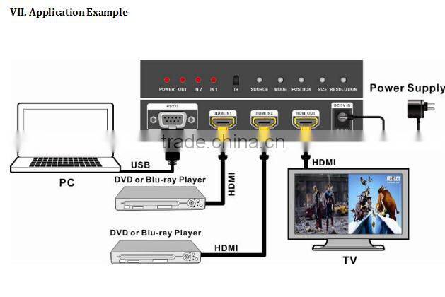 Super HDMI Switch 2 by 1 Switch Multi-Viewer With Picture in Picutre, Support RS232 and IR