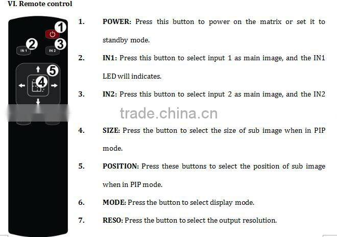 - 2. Supports multiplexed HDMI 2-input and 1-output and 4 display modes;