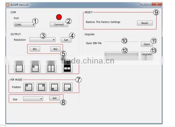 - 6. Output Resolution1080p, 720p, 1080i,1024x768,1360x768