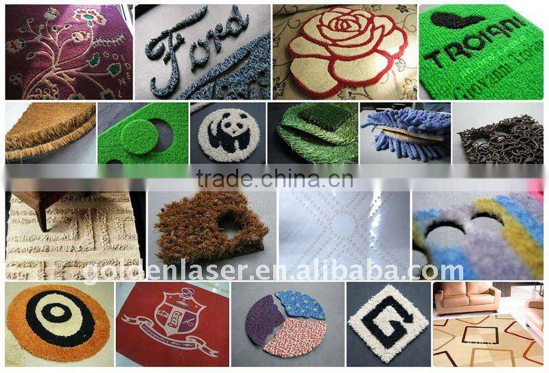 Laser machine suits for cutting wool carpet, polypropylene carpet,woven carpet,rug,tapestry,tufted carpet,yoga mat,restaurant carpet,living room carpet,corridor carpet,wool axminster carpet,decorative wool and nylon rug,cut pile carpet,floor area carpet,office carpet,logo carpet,woolen hospitalities rug,hotel carpet,banque hall carpet,decorative tapestry,commercial carpet, polyester shaggy carpet,silk shaggy rugs, wilton mat,blend carpet,woolen carpet,non-woven carpet,wall to wall carpet,fiber carpet,indoor carpet,outdoor carpet,floor rug,custom mat,carpet tile. Car/automotive/plane/aircraft carpet.