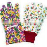 9-11inch Flora Printed Pvc Dots Cotton Garden Glove