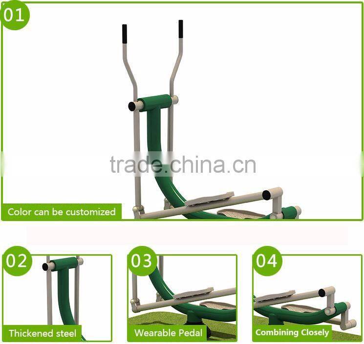 Cutting Raw Material (Galvanized steel pipe) ——> Curving——> Welding——> Polishing ——> Sand Blasting ——> Color Powder Coating ——> Fix with post cover and foot treadle ——> Packaging