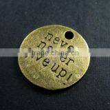 20mm Vintage Style Bronze Plated Alloy Antiqued Never Never Give up Engraved Letter DIY Pendant Charm Supplies 1810221