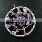 40x55mm Round Handmade Wiring Tree in Random Purple Amethyst Stone Pendant Charm DIY Supplies 1820245
