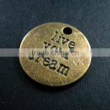 20mm Vintage Style Bronze Plated Alloy Antiqued Live Your Dream Engraved Letter DIY Pendant Charm Supplies 1810219