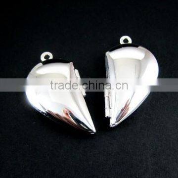 29MM silver plated brass lovers' heart locket pendant charm,vintage heart love photo locket 1132008