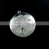 33mm Silver Plated Iron Round Filigree Photo Locket Pendant Charm DIY Supplies 1112004