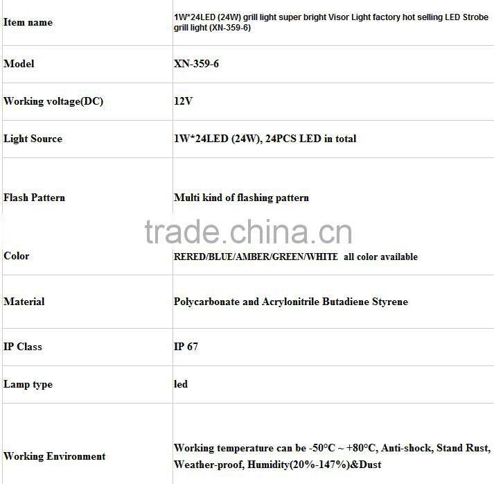 1W*24LED (24W) grill light super bright Visor Light factory hot selling LED Strobe grill light (XN-359-6)