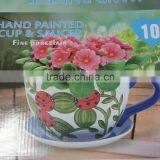 Ceramic Hand Painted Tea Cup & Saucer Planter