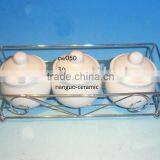 3pcso f Saucer Bowl With Wooden Tray Ceramic White Bowls