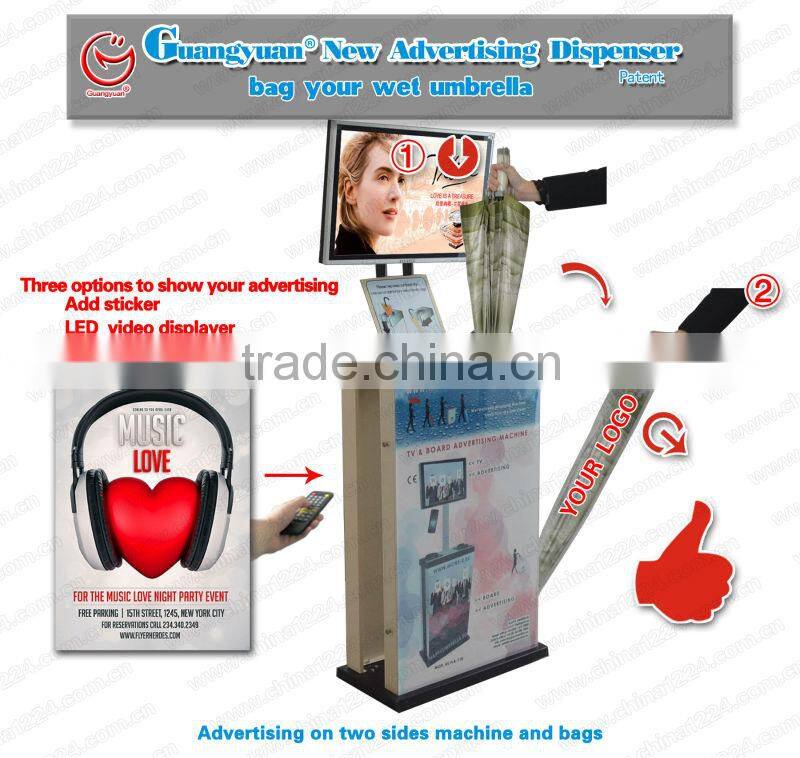 Guangyuan umbrella dispenser is an useful system and a quick way to pack a wet umbrella in a second;