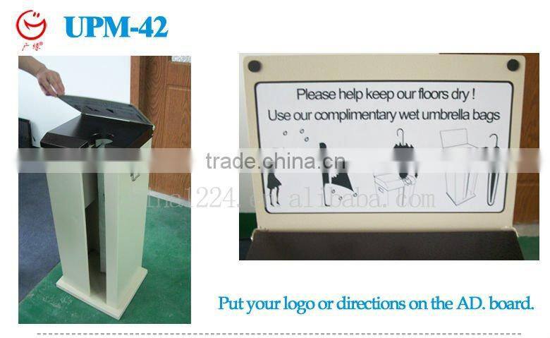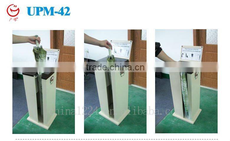 Install this little machine at the entrance of supermarkets,sovle problems like umbrellas piled at the entrance,drop on the floor ,take a wrong umbrella on rainy days.You can rent the golden advertising space for benifit on sunny days.