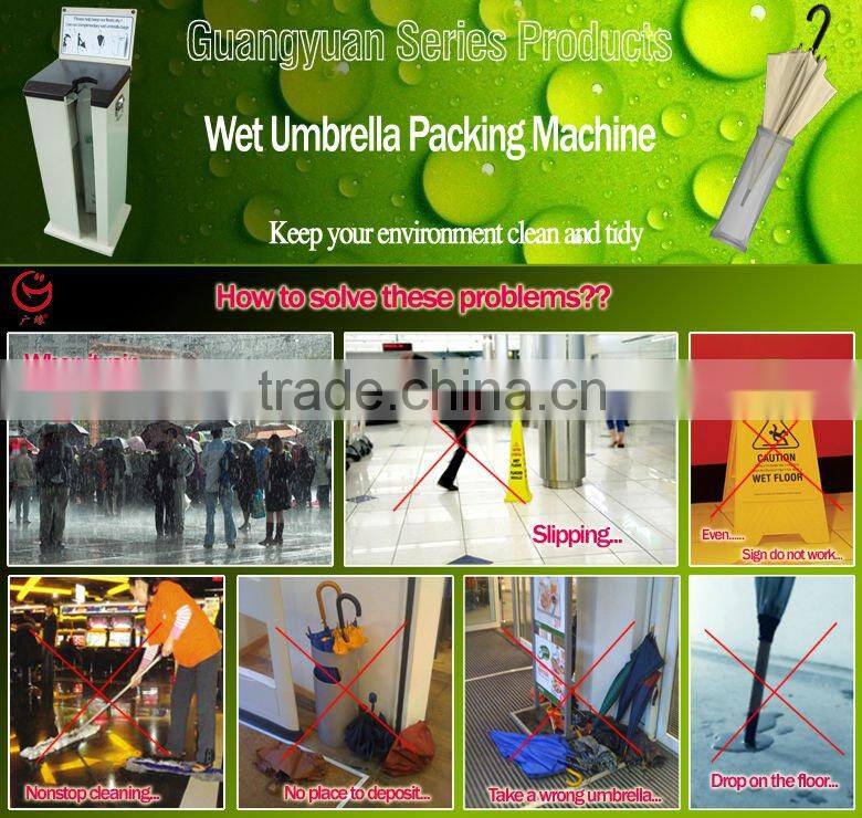 Umbrella packing machines is a new quick service equipment for supermarket wet floor cleaning used to solve the troubles in the rainy days!