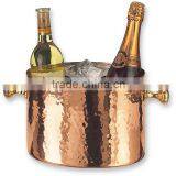SOLID COPPER HAMMERED WINE COOLER BUCKET WITH BRASS HANDLE ICE BUCKET DRINKS HOLDER