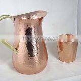 Handmade Pure Copper Luxury Jug Pitcher Storage Drinking Water , Copper Pitcher With Small Glass & Copper Shot Glass Set of 2