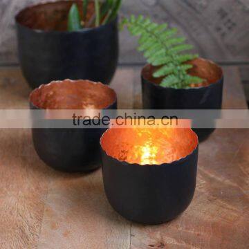 Black Matt Votive With Gold Inside Hammered Votive T-light Holder