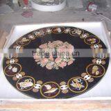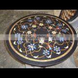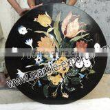 Marble Black Round Stone Inlay Dinning Table Top Pietra Dura Table Top