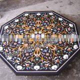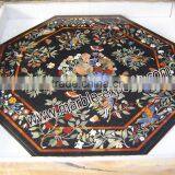 Handmade Octagon Black Marble Inlay Table Top, Pietre Dure Inlay Table Top