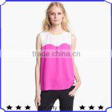 Chiffon Color Patchwork Summer Simple Neck Designs for Ladies Tops