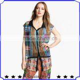Models Chiffon Blouses Made in China ,sleeveless Fancy Printed Chiffon Shirts Tops Design for Women