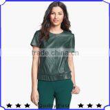 Green Short Sleeve Pu Leather Tops New Fashion Girls Tops 2016
