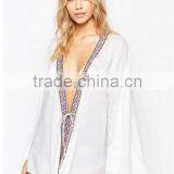 2016 Latest Design Sexy Tie up Placket Embroidery Kimono Women ,kimono Cardigan