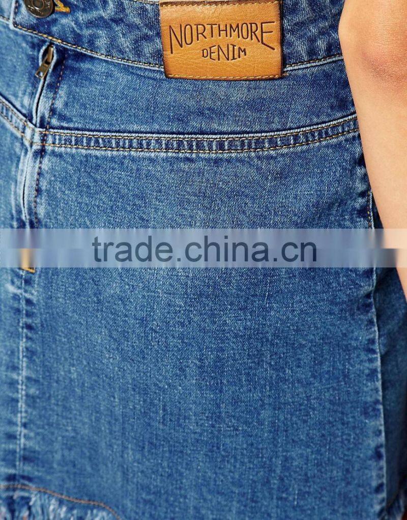 Ladies Blue Washed Denim Skirt A-Line Irregular Denim Skirt For Hot Girl